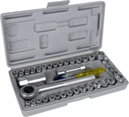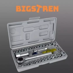 Ce jeu complet de 40 pièces de douilles BIGSTREN couvre les dimensions métriques et impériales et fournit tout ce dont vous avez besoin pour le montage, la réparation et l’entretien. Les pièces sont en acier de qualité et rangées dans une mallette compacte de 24,5 × 12,5 × 4 cm, pour avoir vos outils toujours bien organisés à portée de main.