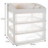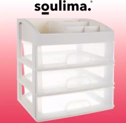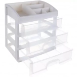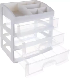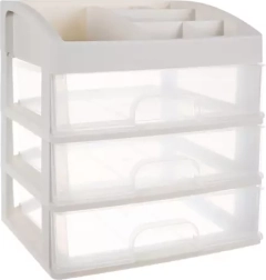 Pratique organisateur en plastique avec 3 tiroirs transparents et une étagère supérieure avec 6 compartiments pour garder vos produits cosmétiques, bijoux et petites fournitures de bureau bien ordonnés au même endroit. Grâce aux façades transparentes, vous trouvez toujours rapidement ce dont vous avez besoin, et ses dimensions compactes conviennent à la coiffeuse, à la salle de bain comme au bureau.