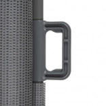Pratique, la barrière/rideau de sécurité extensible protège les enfants et les animaux domestiques des zones dangereuses de la maison. Grâce au mécanisme enroulable, elle économise de l’espace, se manipule d’une seule main et offre une installation universelle sur les portes, les escaliers ou vers la terrasse. La maille en PVC résistante et les éléments en aluminium garantissent une longue durée de vie, tandis que l’installation rapide avec les accessoires fournis fait gagner du temps.