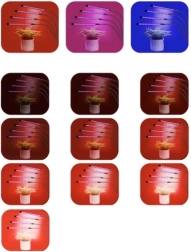 Alternez entre lumière rouge (660 nm), bleue (460 nm) et violette combinée. Favorisez la germination, la croissance et la floraison avec une efficacité maximale.
