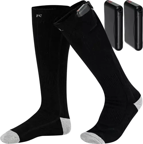 Le pack comprend tout le nécessaire pour l'utilisation - une paire de chaussettes, deux batteries et un câble USB avec séparateur. Fini les pieds froids !