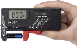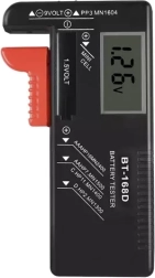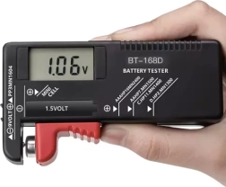 - Large compatibilité : AA, AAA, C, D, 9 V, bouton 1,5 V, ainsi que certains accus Li‑ion cylindriques (p. ex. 18650, 16340, 14500, 10440, 21700) – pour un contrôle rapide de la tension.