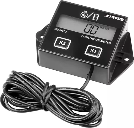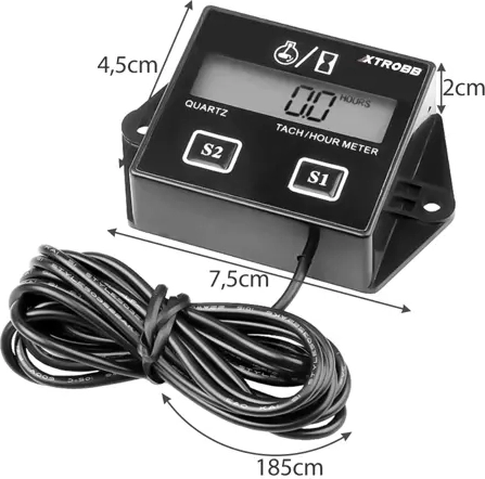 Le compteur de tours et d'heures de travail Xtrobb est idéal pour suivre le temps d'utilisation des appareils motorisés. Avec une précision de mesure de 0,1 heure et une portée jusqu'à 9999,9 heures, il convient à tout environnement. Il est compact et facile à utiliser.