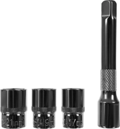 Le coffret comprend tout le nécessaire : 3 embouts 17/19/21 mm et une rallonge pour un meilleur accès. La construction en acier de qualité résiste aux déformations et aux fissures, tandis que les éléments en silicone améliorent le confort d’utilisation. Un étui résistant protège l’outil lors du stockage et du transport.