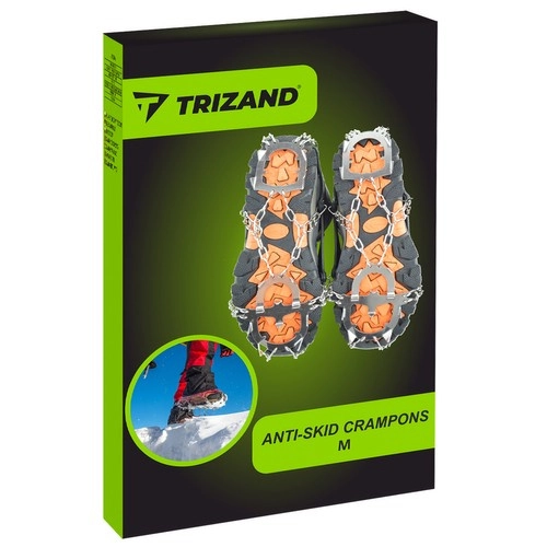 ANTIDÉRAPANTS + SANGLES – sur-chaussures élastiques équipées de pointes en acier. Idéales pour les randonneurs, balades en forêts et en montagne. En mettant ces crampons, nous gagnons en assurance lors de la marche par conditions météo difficiles comme la neige et le verglas. De plus, les sangles auto-agrippantes empêchent les crampons de glisser de la chaussure.
