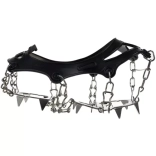 SPÉCIFICATIONS - couleur : noir / argent ; matériau : TPE / acier inox 304 et 430 ; nombre de dents par crampon : 12 ; taille : M 35-39 ; épaisseur du caoutchouc tenant les chaînes : 0,4 cm ; hauteur de la pointe : 1,7 cm ; dimensions de la housse : 13/18/5 cm ; poids : 415 g ; poids avec emballage : 420 g.