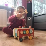 Grâce aux possibilités de retourner, tirer et taper, le jouet offre des options variées de jeu et d’apprentissage.
