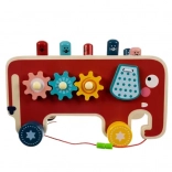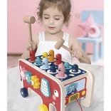 Ce jouet favorise le développement de la motricité fine et de la concentration grâce à des éléments interactifs tels que des maillets et des engrenages.