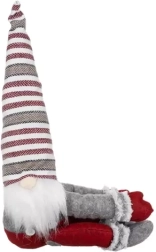 Adorable lutin de Noël avec longue bonnet tricotée et barbe douce qui égaye tout intérieur. Grâce aux bandes auto-agrippantes intégrées sur les mains et les pieds, il se fixe facilement aux rideaux, rampes ou poignées, ou se pose sur une étagère. Le bonnet flexible renforcé par un fil permet de modeler le look selon l’humeur. Feutrine douce, combinaison rouge-gris universelle et possibilité de décoration assise ou suspendue en font un complément parfait à la décoration des fêtes.