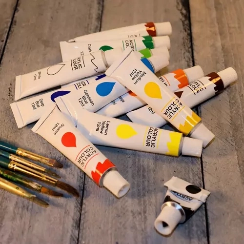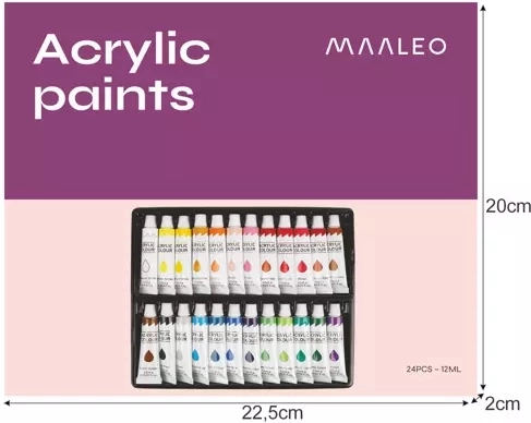 Découvrez un monde de couleurs et de créativité avec ce set de peintures acryliques. Chaque tube contient 12 ml de peinture, adaptée à divers supports. Le set comprend :