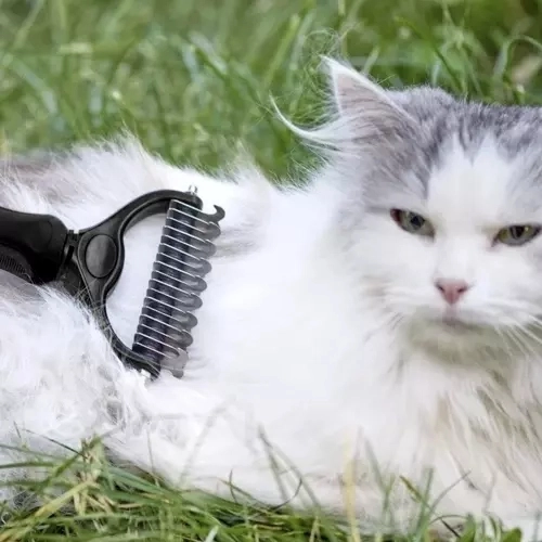 Les extrémités arrondies protègent la peau de l'animal et les bords intérieurs affûtés viennent à bout des nœuds en un rien de temps – un démêlage efficace sans risque d'irritation.