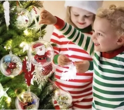 Créez votre propre décoration magique avec des boules de Noël transparentes qui se séparent en deux moitiés et permettent d’insérer des plumes, paillettes, mousse, confettis ou de la neige artificielle. Le matériau résistant ne se brise pas, idéal pour les activités créatives en famille. Le lot comprend 12 boules de 8 cm de diamètre et des ficelles de suspension – parfait pour des décorations DIY et un style de Noël unique.