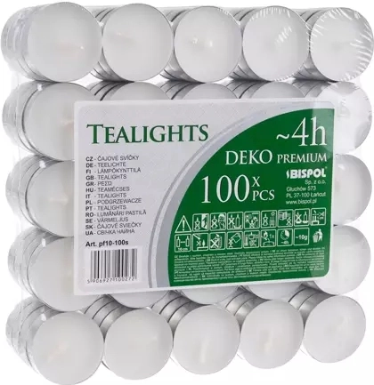 Grâce à une charge de paraffine de qualité, les bougies brûlent de manière uniforme et avec très peu de fumée. L’emballage contient 100 pièces – idéal pour les mariages, fêtes et l’usage quotidien. Placées à l’abri des courants d’air et avec un espacement adéquat, vous obtiendrez une combustion calme et longue.