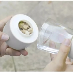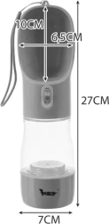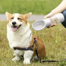 La bouteille sert de réservoir d’eau, de nourriture et intègre une gamelle pour nourrir facilement votre compagnon à fourrure. Cette solution garantit que votre animal n’aura jamais soif ni faim.