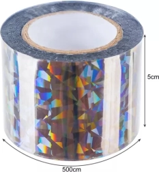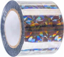 Ce ruban possède une couche holographique qui reflète la lumière dans différentes directions, créant un effet de profondeur et de tridimensionnalité. De plus, le matériau est imperméable, idéal pour une utilisation en extérieur.