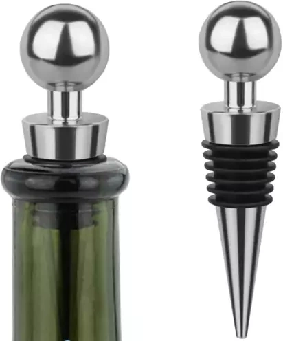 Le design comprend une tête sphérique en métal et une forme conique, facilitant l’insertion dans la bouteille. Les anneaux en caoutchouc assurent une étanchéité totale, tandis que le design métallique ajoute une touche moderne à toute cave à vin.
