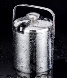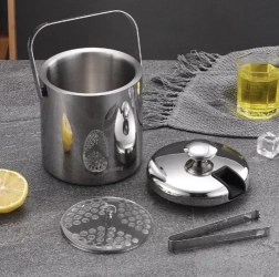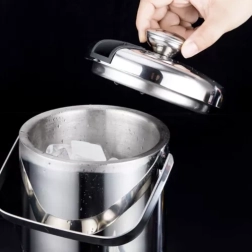 Ce seau à glace en inox avec son kit d’accessoires est indispensable pour les amateurs de boissons rafraîchies. Grâce à sa double paroi, la glace reste gelée plus longtemps et la capacité de 1,3 l permet de servir des glaçons à toute occasion. Sa poignée ergonomique facilite le transport du seau et de son contenu.