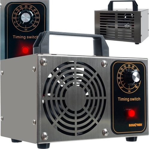 Ozonateur puissant pour appartements, bureaux et voitures : produit jusqu’à 20 000 mg/h d’ozone pour une désinfection rapide et l’élimination des odeurs. Dispose d’une minuterie 1–60 min, d’un boîtier métallique robuste et d’une poignée de transport. Traite efficacement jusqu’à 120 m² sans produits chimiques – l’ozone se décompose en oxygène après le cycle.