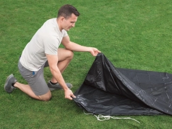 Des cordons de fixation à serrage facile maintiennent fermement la bâche en place pour qu’elle ne soit pas emportée par le vent. Installation et retrait rapides, sans outils.