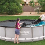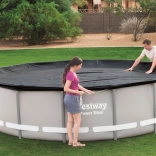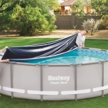La bâche empêche notamment les insectes, les feuilles et le pollen de tomber dans la piscine, réduisant ainsi l’entretien et la consommation de produits chimiques. Elle limite également l’évaporation et le refroidissement de l’eau.