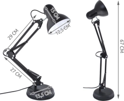 Cette élégante lampe de table noire est un complément parfait pour votre espace de travail grâce à son design rétro. Avec une construction métallique, elle offre solidité et durabilité, tandis que sa base lourde empêche le basculement. Elle est équipée d'un bras réglable avec ressorts intégrés, permettant un ajustement facile de la hauteur et de la direction de la lumière selon vos besoins.