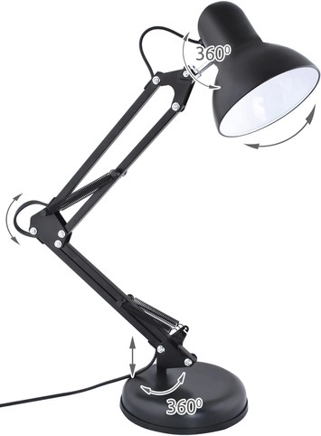 L'abat-jour peut être pivoté sur un total de 360 degrés, offrant une flexibilité maximale pour l'éclairage de votre espace de travail. L'interrupteur pratique est situé sur le câble, facilitant le contrôle de la lampe. La lampe est compatible avec une douille E27.