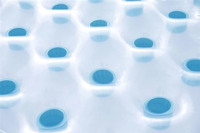 Le matelas est fabriqué en PVC de 0,29 mm d’épaisseur, garantissant durabilité et résistance.