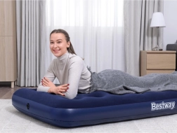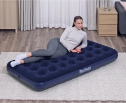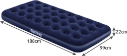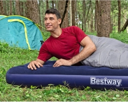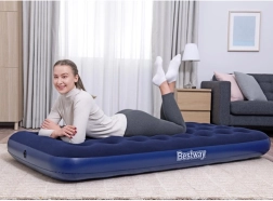 Pratique matelas gonflable pour une personne de BESTWAY, idéal pour le camping, la tente ou comme lit d’appoint pour les invités. Le PVC résistant avec une surface en velours douce assure confort et longévité, tandis que les chambres à ondes/coil-beam offrent stabilité et soutien. Grâce à la valve à dégonflage rapide avec blocage, le matelas se gonfle et se dégonfle rapidement et se nettoie facilement.