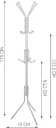 Le portemanteau sur pied est conçu pour maintenir un espace bien organisé. Il est équipé de 12 crochets avec capuchons de protection en plastique qui préservent vos vêtements. Idéal pour suspendre manteaux, chapeaux et parapluies sur 3 niveaux de crochets.