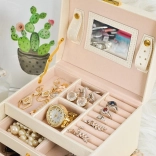 - Détails pratiques : miroir dans le couvercle, bandes à pressions pour colliers et bracelets