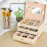 - Organisation claire : 20 compartiments, rouleaux pour bagues, 2 tiroirs