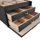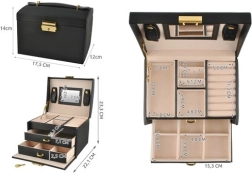 - Organisation claire : 20 compartiments, rouleaux pour bagues, sangles avec boutons-pression pour colliers, 2 tiroirs.
