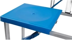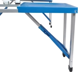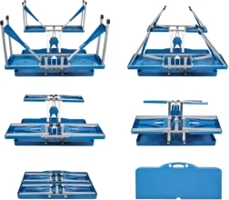 Une fois pliée, la table forme une valise pratique avec poignée. Le dépliage et le pliage sont rapides et sûrs grâce aux verrous de blocage.