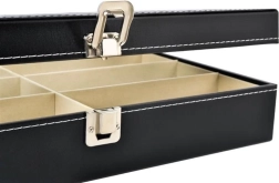 À l’intérieur, vous trouverez 8 compartiments individuels avec des séparateurs plus hauts qui empêchent tout contact indésirable et les dommages. La douce doublure en flanelle protège des éraflures, la ganse maintient le couvercle à l’angle idéal et le bouton-pression métallique assure une fermeture sûre lors des déplacements.