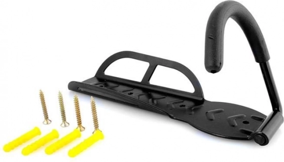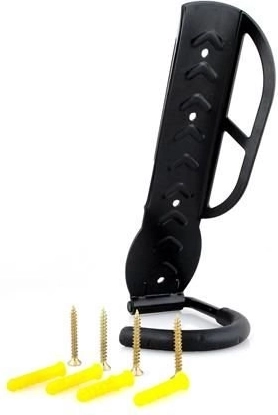 Ce crochet universel pour vélo est conçu pour différents types de vélos – urbains, de montagne, de route – et pour toutes les tailles de roues. Il se fixe au mur à l'aide de quatre vis de montage, offrant un rangement stable et sûr pour les bicyclettes.