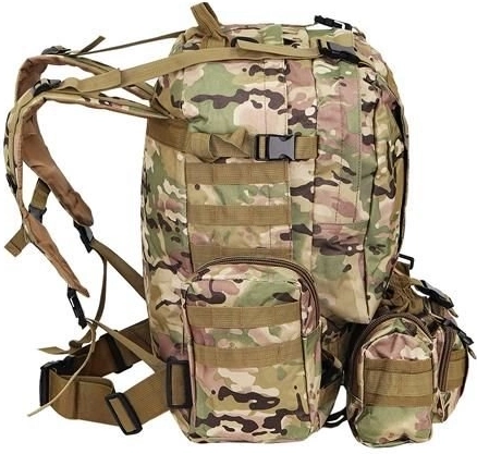 Le grand sac à dos militaire de 45l offre 2 compartiments principaux avec des poches additionnelles et trois poches amovibles, offrant suffisamment de place pour tout votre équipement. Il est fabriqué en tissu Oxford 900D, garantissant une résistance aux déchirures et à l'usure. La doublure intérieure en PVC augmente la résistance à l'eau, tandis que le maillage respirant sur les bretelles et le dos permet une meilleure ventilation.