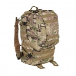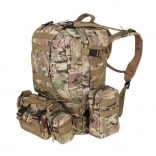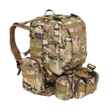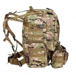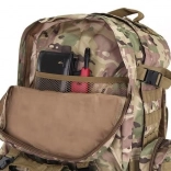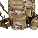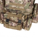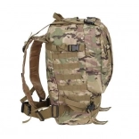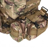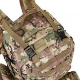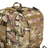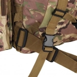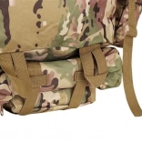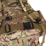 Le système de portage ajustable est équipé de bretelles profilées avec boucles à dégagement rapide, d'une ceinture thoracique et lombaire, qui aident à répartir le poids et assurent la stabilité. Le sac est compatible avec le système MOLLE grâce aux sangles PALS, permettant de fixer des équipements supplémentaires.