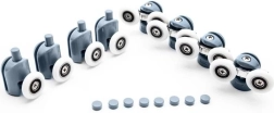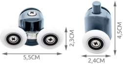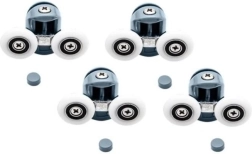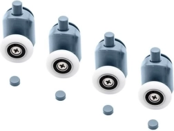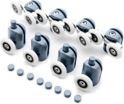 Remplacez les chariots usés ou qui coincent et retrouvez une ouverture des portes de douche fluide et sûre. Le kit comprend des roulettes supérieures double et des roulettes inférieures simples, rabattables et déclipsables pour un entretien et un nettoyage faciles. La conception universelle avec roulements à billes s’adapte à la forme du rail de guidage et empêche les portes de sortir de leur logement.