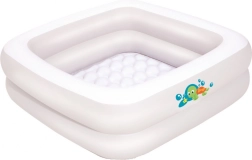 La baignoire/petite piscine gonflable Bestway BABY STEP 1-2-3 offre à votre bébé un environnement confortable et sûr pour le bain et ses premières joies aquatiques. La forme carrée 86 × 86 cm assure suffisamment d’espace, tandis que le fond gonflable est doux, agréable et aide à prévenir les glissades.