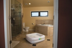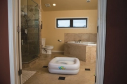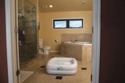 Le fond gonflable intégré offre confort aux enfants assis ou en train de jouer, tout en aidant à réduire le risque de glissade pendant le bain ou les éclaboussures.