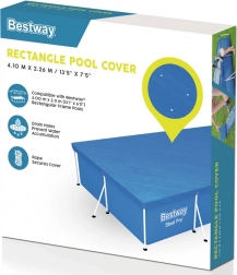 Bâche universelle pour piscine Bestway conçue pour les piscines à cadre de 400x211 cm. Cette bâche de protection protège la piscine des impuretés telles que les insectes, les oiseaux, les feuilles et les pluies légères, et renforce la sécurité des enfants.