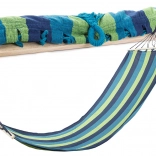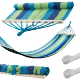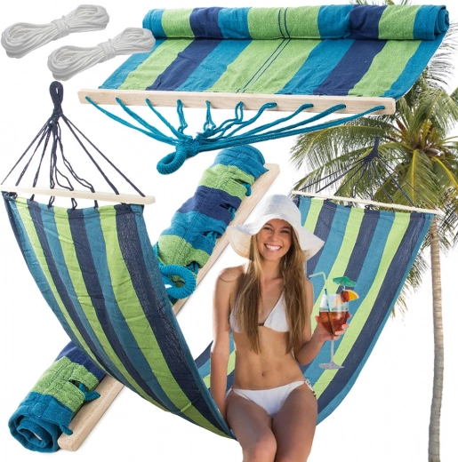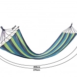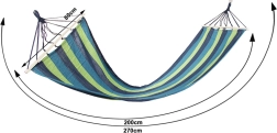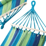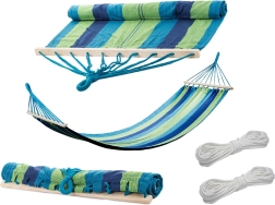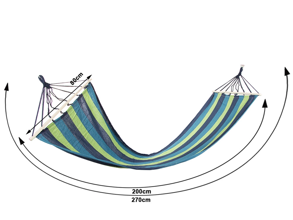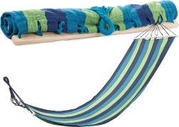 Profitez d’un maximum de détente avec ce hamac stable et confortable doté de barres en bois. Il offre une grande capacité de charge jusqu’à 150 kg, une surface spacieuse de 200 × 80 cm, une suspension facile et un design rayé élégant adapté au jardin, à la terrasse et au balcon.