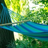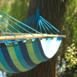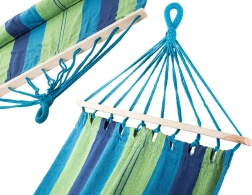 Ce hamac de jardin avec barres d’écartement en bois est idéal pour se reposer en extérieur comme à la maison. Le mélange résistant de coton et polyester est agréable au toucher, respirant et robuste. Grâce aux cordes tressées épaisses et à sa structure stable, profitez d’un balancement sûr et confortable.