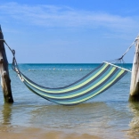 Des cordons de fixation sont inclus, l’installation se fait en un clin d’œil – entre deux arbres, sur un support ou des crochets dédiés. Le hamac est facile à transporter, prend peu de place et peut être lavé en machine, idéal donc pour le jardin, la terrasse, le balcon et le camping.