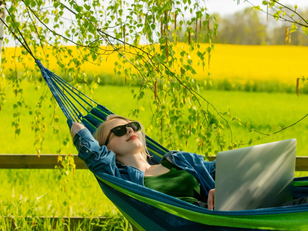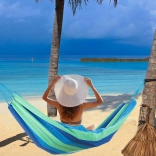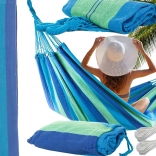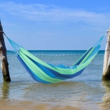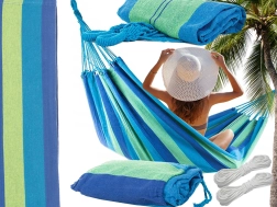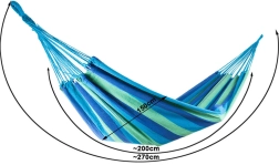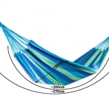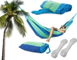 La large surface de couchage offre un confort maximal pour deux personnes, tandis que les cordes robustes et les coutures de qualité garantissent stabilité et sécurité. Une fois plié, il prend très peu de place et, grâce à sa housse, vous l’emportez facilement pour un pique-nique, du camping ou en vacances.