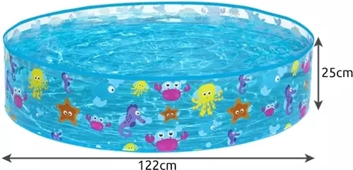 Les spécifications de la piscine incluent une capacité de 277 litres et des dimensions de 122 cm x 25 cm, ce qui est idéal pour les jeunes enfants. Le produit pèse seulement 950 g, il est donc facile à manipuler et à transporter. Un patch de réparation étanche est inclus dans l'emballage, permettant des réparations rapides même lorsque la piscine est remplie d'eau.