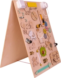 La caractéristique unique de cette planche est sa réversibilité - un côté contient de nombreux éléments manipulables et l'autre sert de surface pour dessiner et écrire avec des craies, des marqueurs ou des crayons. Cela aide les enfants à développer leur créativité et leur motricité fine.