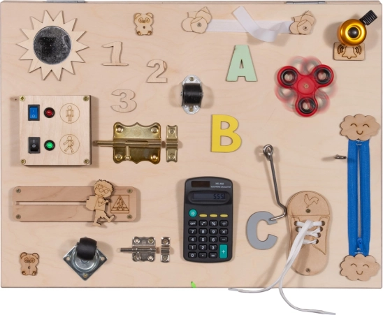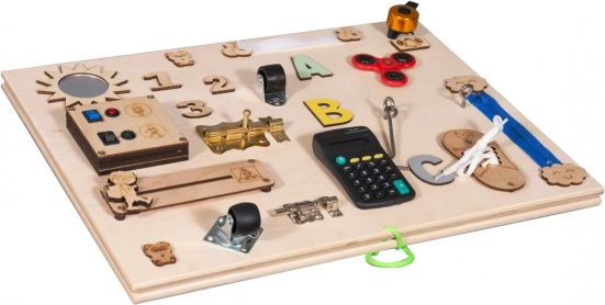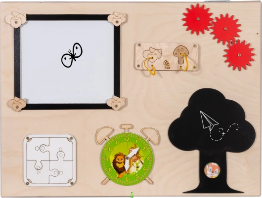 Cette planche manipulatrice en bois est pleine de divers éléments de jeu qui aident les enfants à développer leurs compétences. Les enfants peuvent jouer avec différents mécanismes interactifs qui garantissent des heures de plaisir.