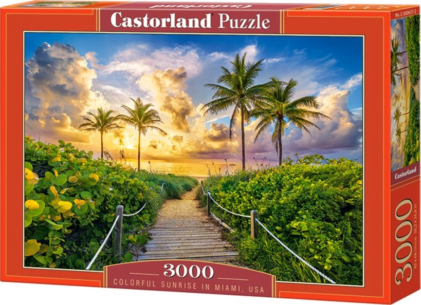 Découvrez un magnifique puzzle au motif Colorful Sunrise in MIAMI composé de 3000 pièces, idéal pour les amateurs de défis et de détente de qualité. Une fois assemblée, l’image mesure 92 × 68 cm et se distingue par une fabrication précise, des couleurs intenses et des pièces de haute qualité pour un assemblage fluide.