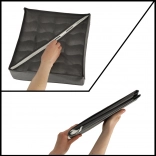 Mettez de l’ordre dans votre tiroir une bonne fois pour toutes. Cet organisateur textile à 24 compartiments trie clairement les chaussettes, sous-vêtements, cravates et accessoires. Il possède des parois renforcées, est fabriqué dans un tissu respirant, se nettoie facilement et, grâce à sa construction pliable, ne prend pas de place lorsque vous n’en avez pas besoin.